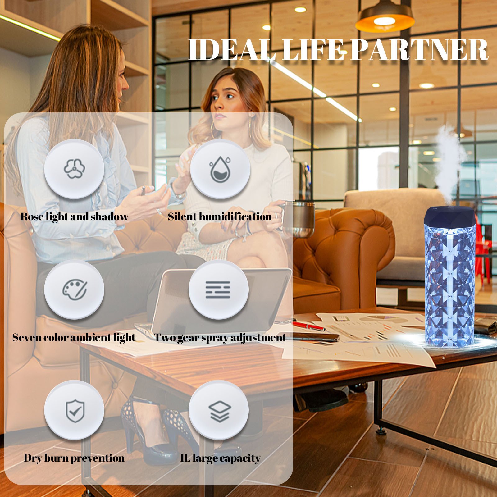 Crystal Lamp Air Humidifier Color Night Light Touch Lamp With Cool Mist Maker Fogger LED Atmosphere Room Decoration Home Decor Lights